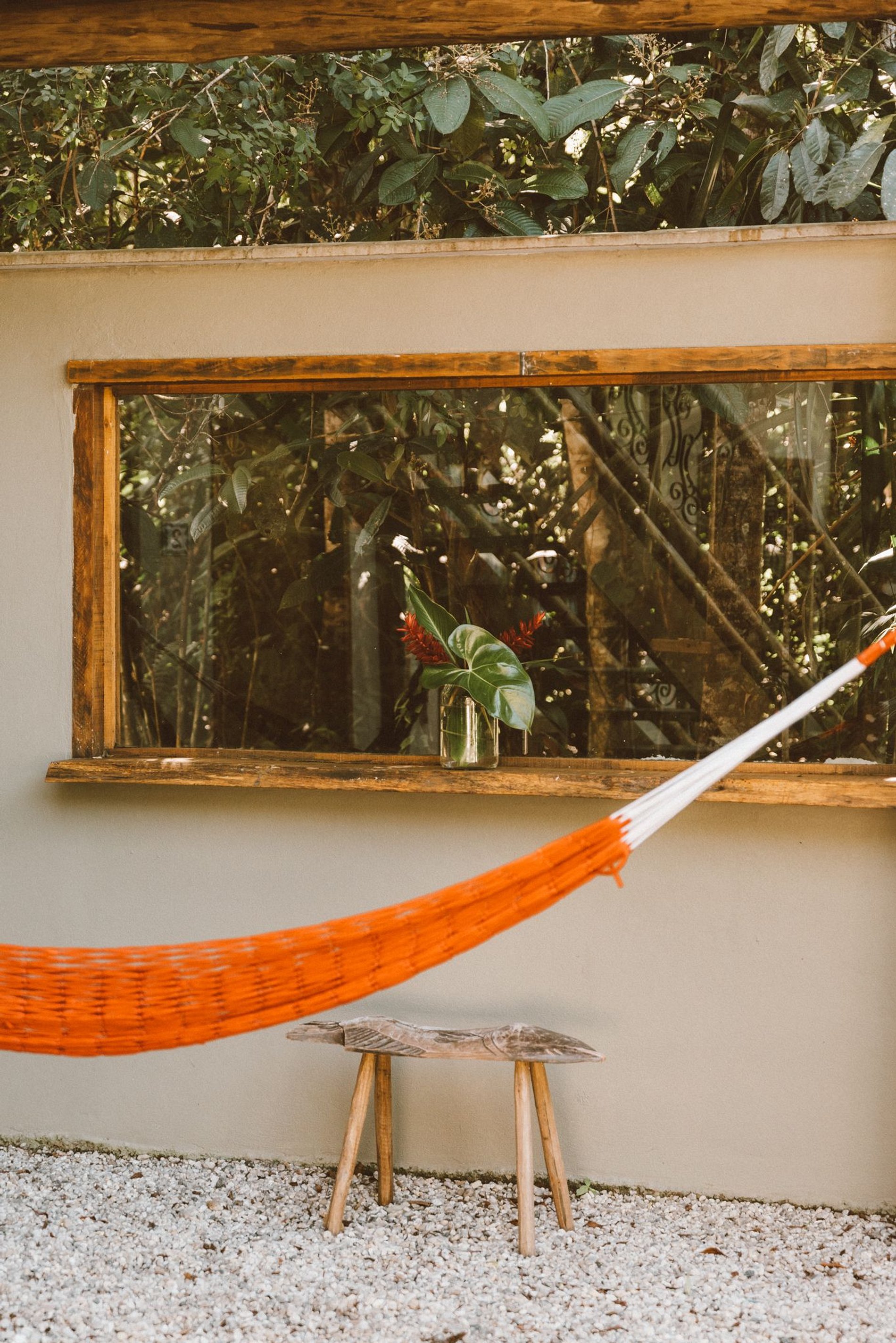 Os quartos são equipados com varal de chão para estender roupas, de modo que pedimos, por gentileza, que não pendure roupa no corrimão da varanda, sendo prejudicial ao material de madeira e a estética e harmonia do ambiente com os demais hóspedes.